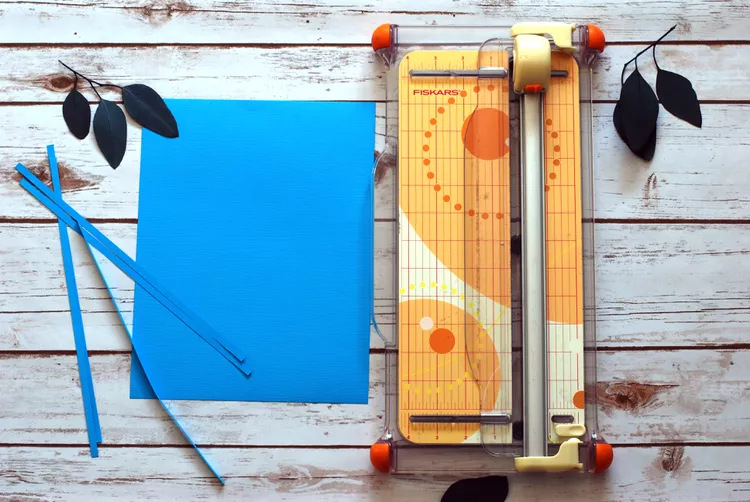 - Use the paper cutter to cut paper strips from the card stock that measure one-quarter inch wide.